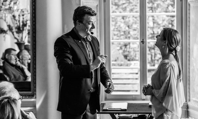 Ich liebe es, wenn Gäste interaktiv eingebunden werden. Ob ein geliehener Gegenstand verschwindet oder Gedanken gelesen werden – diese Zauberei sorgt für Staunen und Gesprächsstoff. Solche Momente der Beteiligung bleiben als nachhaltige Erinnerung bestehen und verstärken das Gemeinschaftsgefühl in Ihrem Unternehmen.