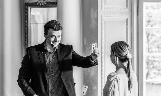 Als Tischzauberer nutze ich Alltagsgegenstände, Karten, Münzen oder Gedanken selbst. Ja, Sie haben richtig gelesen: Als Mentalmagier bringe ich Ihre Gäste dazu, sich zu fragen, wie ich ihre Gedanken lesen konnte. Diese Form der Zauberei schafft nicht nur Unterhaltung, sondern auch Faszination und Emotion. Jeder Auftritt ist individuell, jede Reaktion einzigartig.